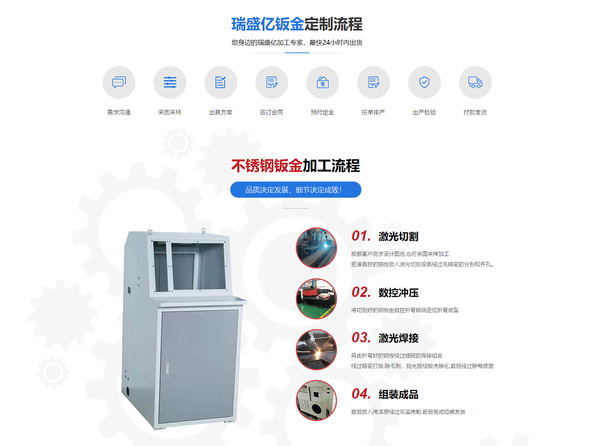瑞盛億金屬制品(廈門(mén))有限公司是由原廈門(mén)市鼎利達(dá)工貿(mào)有限公司(行業(yè)20年經(jīng)驗(yàn))基礎(chǔ)上(管理團(tuán)隊(duì),骨干員工均不變)新成立的一家專(zhuān)門(mén)從事精密鈑金生產(chǎn)的企業(yè),公司主營(yíng):鈑金、機(jī)柜箱、設(shè)備機(jī)架、不銹鋼制品等。本公司將以誠(chéng)信、專(zhuān)注、品質(zhì)及時(shí)為客戶(hù)創(chuàng)造更具價(jià)值的產(chǎn)品,為客戶(hù)創(chuàng)造價(jià)值,贏得客戶(hù)的信任和支持,讓客戶(hù)和員工滿(mǎn)意是本公司可持續(xù)發(fā)展的根本保證,我們將秉承這一理念貫穿整個(gè)生產(chǎn)、經(jīng)營(yíng)活動(dòng)中,保持與客戶(hù)長(zhǎng)期、持續(xù)的合作。